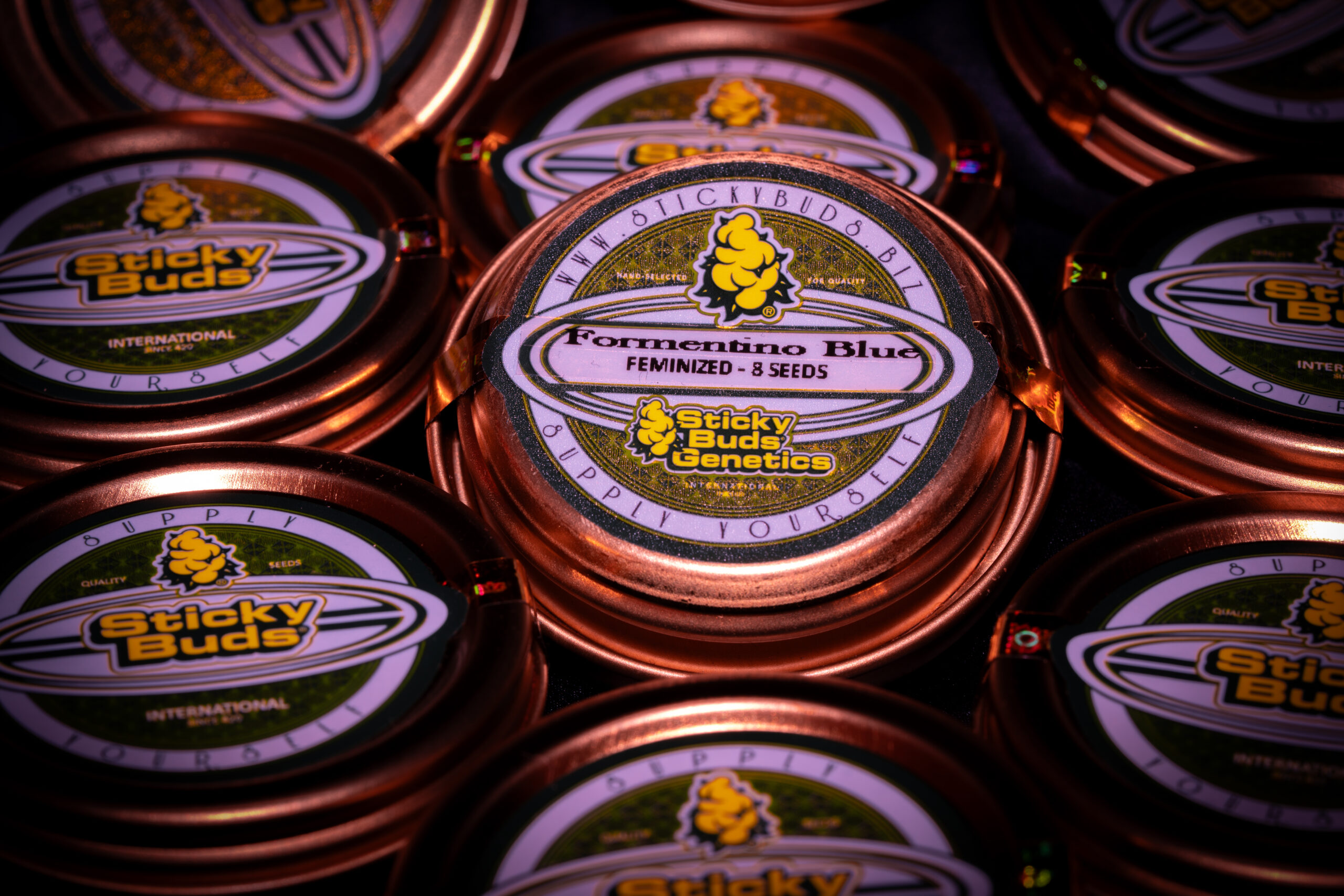 Formentino Blue is a mostly Indica hybrid known for it’s rare blue coloration, creamy aromatic profile, and exceptional resin output. Developed by Stickybuds®, this award-recognized genetic line combines visual uniqueness with elite trichome production, making it a standout reference cultivar for collectors and genetic enthusiasts.